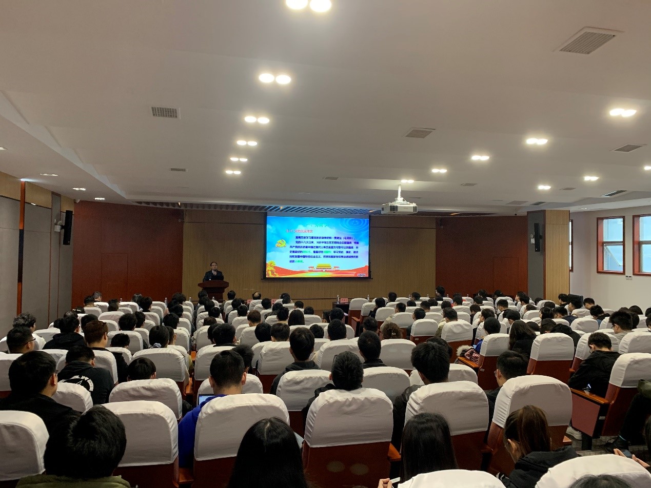 党委彭晓燕书记发表致辞,学院学生工作办主任张骏老师主持会议。此次会议特邀请了马克思主义学院尹世尤教授作《百年党史:为何学,怎么学》主题讲座。学院相关领导、学工办全体老师、学院全体党支部书记(含教工)、全体学生支部支委和全体入党发展对象等参与会议。