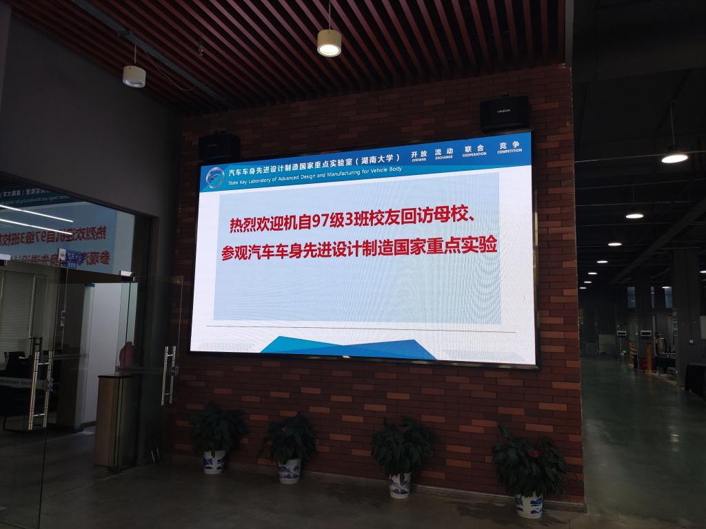在先进设计制造国家重点实验室,我们的研究团队打出欢迎标语,并安排专人给各位校友进行详细的讲解,向各位校友介绍实验室整车设计制造、汽车零部件开发及产业化、智能激光制造装备、碰撞假人及智能网联系统等领域的取得的优秀成果。校友们与研究团队重点讨论了铝镁合金在汽车零部件、康复医疗器械等方面的应用,为母校这些年来取得的成就感到无比的自豪。