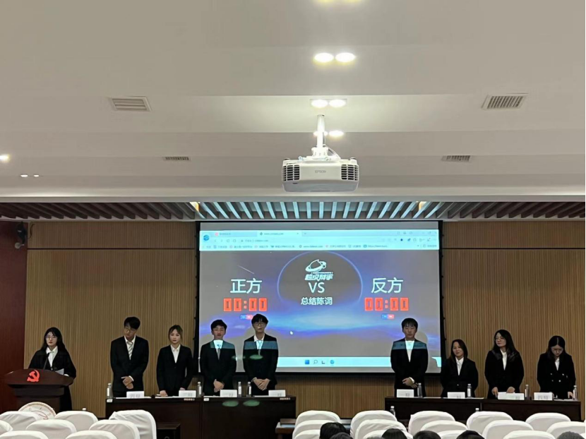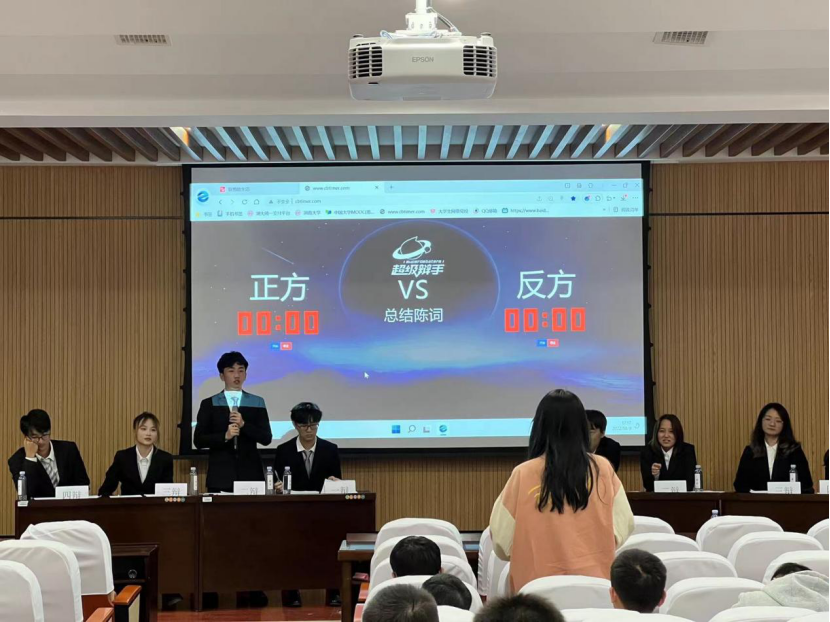 在比赛中,正方物理与微电子学院代表队和反方新闻与传播学院代表队围绕“先发展汽车/道路”和黄色网址