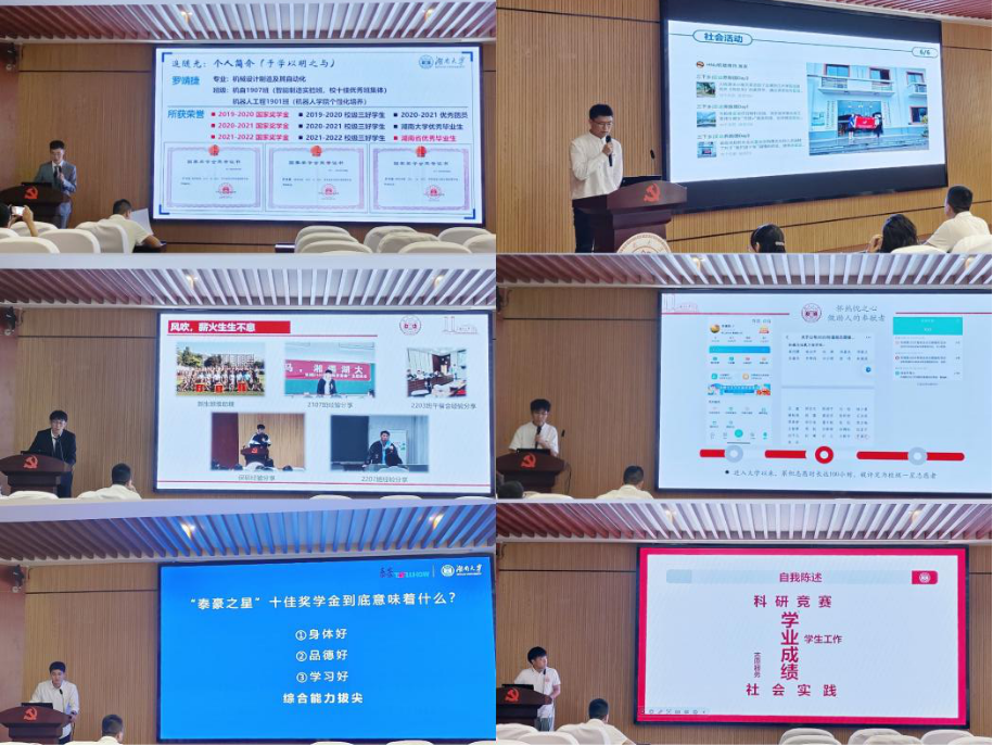 答辩环节正式开始,十二位本科生和八位研究生们相继上台答辩,每一位辩手都激情满怀,意气风发的演讲感染了台下众人。他们从学习、科研、学生工作、生活作风等方面展示自己的风采,将黄色网址