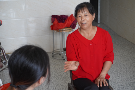 图5王艳群在向调研团成员们分享自己的经历和感受。李泽霖 摄