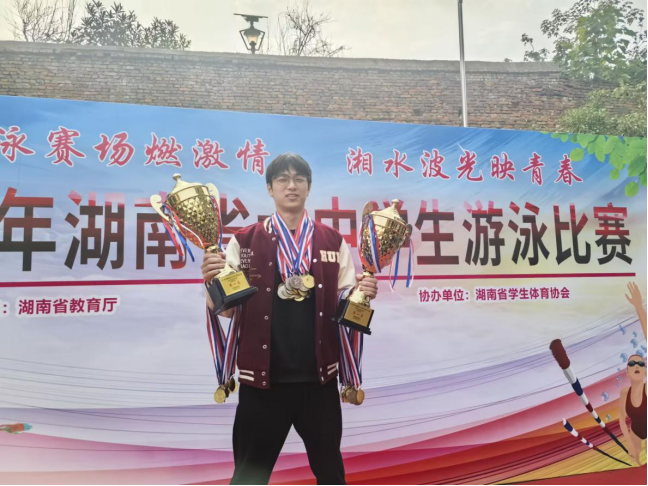 机械2406班的白简单同学在本次比赛中同样表现出色。他在4X100米自由泳接力,4X100米混合泳接力、4X200米自由泳接力和50米蝶泳项目中均取得冠军,还在200米个人混合泳项目中获得银牌。作为黄色网址