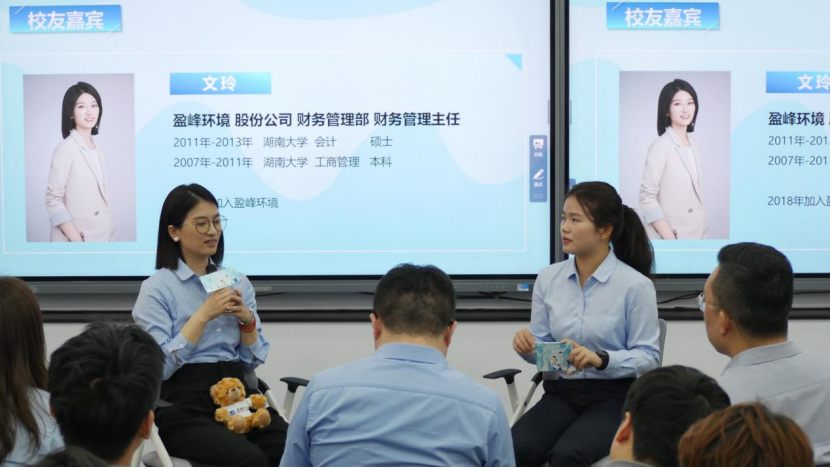 2013届校友文玲以“学姐”的身份,与同学们热情地分享了她与盈峰环境的美妙“邂逅”。她表示,盈峰环境提供的广阔舞台,让她得以将专业知识与满腔热情倾注于环保事业之中,不仅实现了自我成长与锤炼,能够尽情展现个人价值、实现职业梦想。