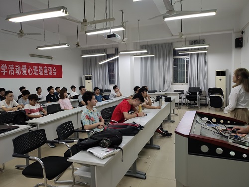 13日晚7:30,各班级负责人陆续到场并签到后,座谈会正式开始。主讲人袁歆懿思路清晰,语言生动,她先从留守儿童的背景入手,引出“春苗心晴”的活动以及公益助学平台,而后又从活动成果,活动内容等方面深入解析了此次公益助学活动。其中,袁歆懿指出,“春苗心晴”的活动并不仅仅是持续短短一周的志愿活动,活动后,志愿者们还将以每周一电,每月一信的形式与孩子们继续联络,以朋友身份继续关怀孩子们的生活学习。