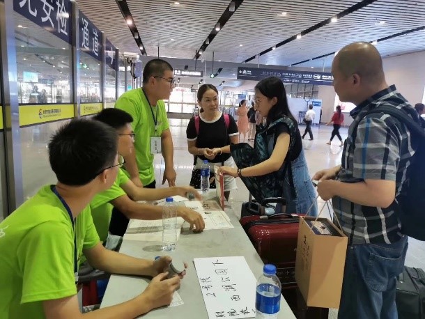 的班级助理和志愿者们也都早早到达自己的工作岗位,有条不紊的展开了各项活动,高铁站和火车站的志愿者们也都开始了他们的工作。