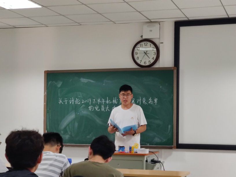 2017级本科生党支部于研楼B303召开了支部大会,讨论2019年下半年入党发展对象资格。该会议由17级党支部书记闫智琪同志主持,王海天同学记录,该支部全体党员、预备党员及发展对象候选人参与此次会议。