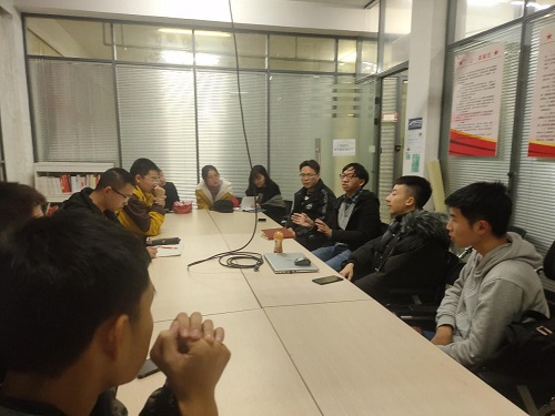 12月3日晚上7点,辅导员王伟彬老师(右四)、能源1902班班主任袁硕老师(右三)、读书会负责人姜明昊同学(右二)、李豪同学(右一)及能源1902部分同学相聚黄色网址