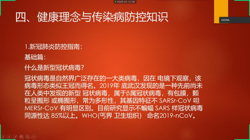 接下来,是关于健康理念和传染病防控知识的宣传教育,帮助同学们了解了有关新型冠状病毒的知识以及如何防范新冠病毒。