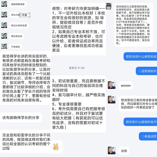 车辆工程专业专硕初试,其中专业课《材料力学》更是达到了满分的好成绩。在谈及自身的初试准备时,苏学长为大家讲述了自己在过去一年中的学习进度、作息安排、考研资料的选取和信息获取的途径。对于同学们最为困惑的专业课复习,苏学长也分享了自己的一些复习心得,内容详尽,干货满满。接着由张源学长负责介绍大较为陌生的复试环节。张学长是15级能源与动力工程专业的学生,现就读于浙江大学动力工程专业(太阳能光电发热方向)。在谈及复试过程的时候,张学长就复试准备、联系导师以和备考误区及调剂三个方向展开了讲述,提出了很多十分受用的小技巧和细节方面的建议,让同学们对于复试的整个流程有了更清晰的认知和了解。负责最后一部分讲解的郝晓伟学长是15级车辆工程专业的学生,现就读于同济大学车辆工程专业(车身方向)。郝学长则向大家分享了自己在过去半年的备考状况以及对夏令营和择校的一些建议和看法,他也谈到了备考过程中的一些切身经历:复习很疲惫的时候如何自我调节?选择什么样的复习方法比较有效?每天怎么规划?说到这里,此次交流会也渐渐接近了尾声,最后我们把话筒交给在场的同学们,大家提出了自己的一些顾虑和不解,学长们也都耐心地一一解答。交流会结束之后,小编采访了几位到场的同学,他们都表示收获颇丰,之前的很多顾虑和疑虑都得到了解答,很感谢学长们的分享。