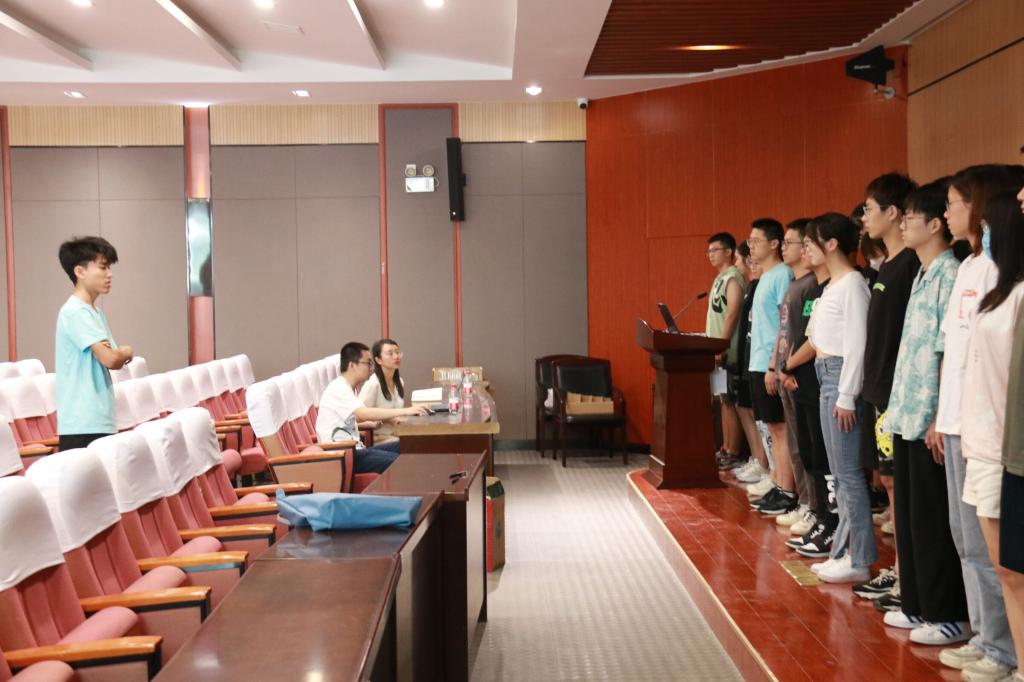 罗华森作为2020年军训的总负责,分享了当年的工作经验。总结了在2020年军训期间新生助理在工作中的常见问题,以实际情况出发给出了当时的解决办法。新生助理自身也要注意言行举止应得体,不能辱骂新生,而是要正确引导。2020年新生助理叶鑫也与新一级助理们交流了工作心得。会议最后,2021级军训总负责李瑞哲让全体新生助理在讲台集合,确认新生助理的集合队形,并表示新生助理更要严格要求自己,严守相关规定。