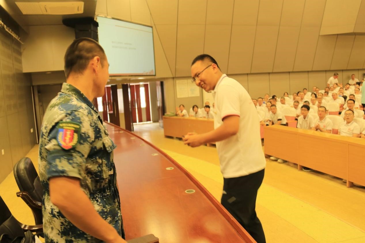 此次军训动员大会特邀请了陆军某特种作战学院特种作战与指挥专业硕士研究生为新生开展军训动员与国防教育,他曾担任过空军某航空兵营长、师机关参谋、基地(军)机关参谋。首先他从国际局势引入,带领新生们走进国防领域,使同学们意识到,纵然目前国泰民安,但我们仍应当对当今世界局势有清楚的认识和了解。便用几张照片展示了国内外四十年间的变化,从照片清晰可见,中国沧桑巨变、日月换新天,经济建设得到了飞速发展,人民的物质生活得到了极大的提升,国际地位迅速提升。而我们国家的进步,都离不开中国建国以来和平的环境。在这样和平的环境下长大,高校学生更应饮水思源,找到自己生而为人的价值,从小我到大我,在国家发展腾飞的过程中也追逐自己的中国梦。结合曾任特种兵的经历,他分享了军旅生活的一些故事,让同学们对军人更加敬佩、对军旅生活更加向往。授课过程中,邀请了部分新生进行互动,并向参与互动的同学赠送了纪念品。