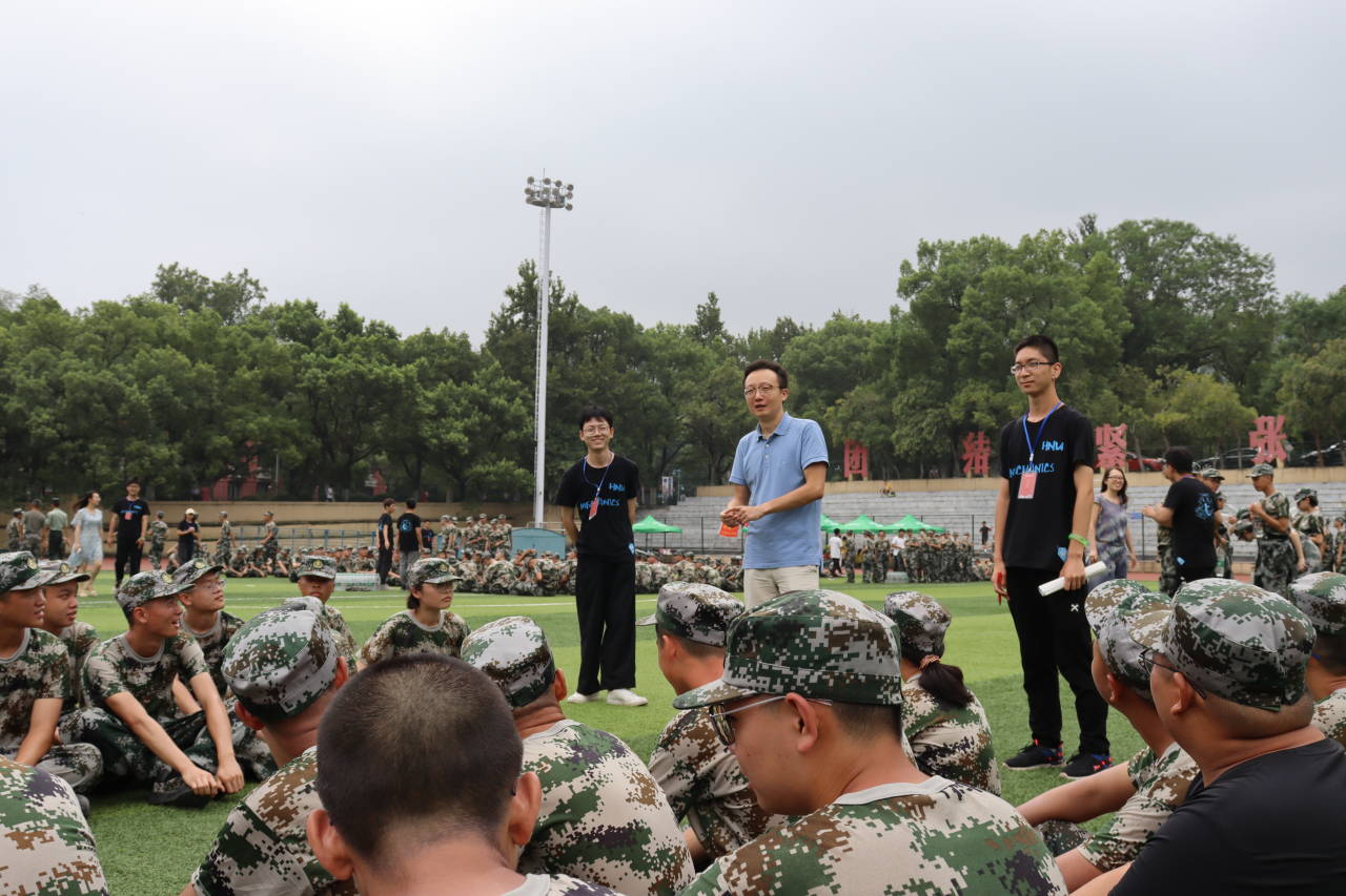 在“组织休息”的哨声吹响后,刘文洋老师和新生助理一起去方阵看望了二营二连一排的新生。还没走到新生所在的方阵,他们就以热烈的掌声表示欢迎。刘老师在对新生的讲话中表示,军训是新生适应大学生活,熟悉周围环境的有效方式。军训虽然艰苦但同样有很多值得回味的瞬间,希望大家珍惜在一起的时光,和谐相处,共同进步。