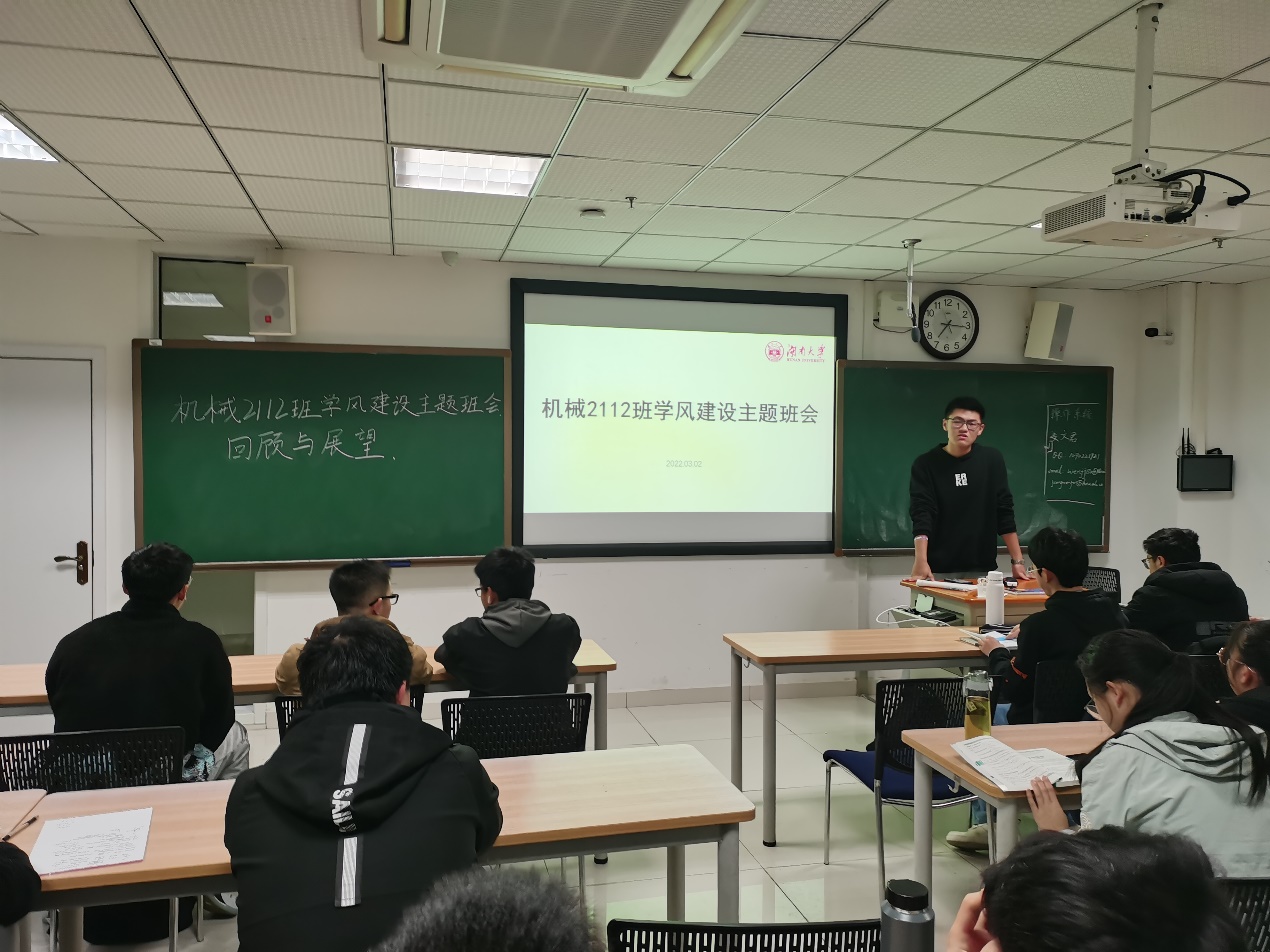 新学期,新开始。为回顾并总结上半学期的学习成果,更为了及时查缺补漏、进行下一学期的学习,机械2112班班长王新宇于周三晚在研A401召开了“回顾与展望”主题班会。