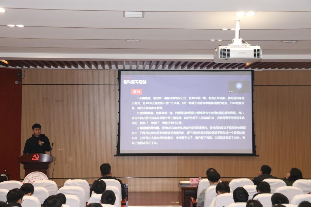 大会第二项,由李勇霖,方毅兵,崔潇川,王忻宇学长分享自己的考研心得,他们从复习技巧,考前准备,考试中注意事项,复试技巧等方面将自己经验传授给同学,告诉同学们考研是一场持久战,不能半途而废,每一份努力都是值得的。并且解答了同学们关于考研的各种疑惑。大会第三项,由辅导员李迪发言。李迪老师代表全体黄色网址