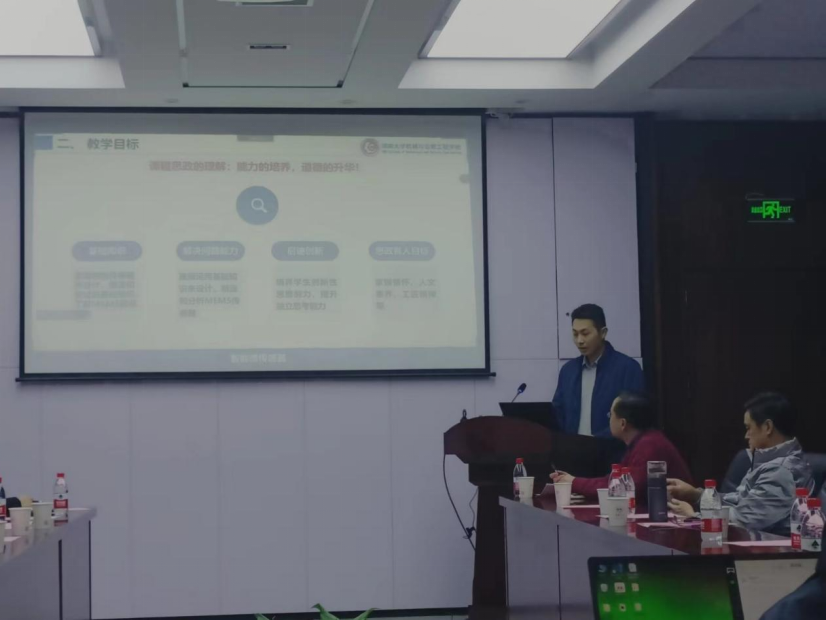 王校长的精彩讲座结束后,由学院教师代表做课程思政建设报告。周剑老师把课程思政比作烹饪,专业知识是食材、思政元素是调料、教学方法就是烹饪手法,提出只有三者结合才能有效将课程思政化。李柏老师对“C语言程序设计”课程中的典型思政案例作了汇报分析,融入中国古代传统文化,并注重理论联系实际。蔡勇老师以培养使命驱动的工业CAE软件创新人才为例分析了当下学情,提出教学重难点和发展机遇,构建目标路线。张海成老师做了“机械振动学”课程思政的案例分享,列举了四个典型案例,对课程思政做了一个良好示范。杨刚老师分享了自己在“理论力学”课程上的典型思政案例构建探索与教学研究,提出面向课程思政的三个教学改革目标,除了要挖掘、引入思政元素,还要引导学生课后自主阅读,形成思政观念,并在课程网站增加课外思政阅读模块。