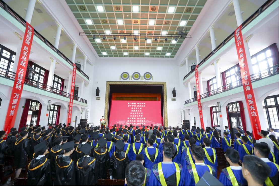 随后,各级优秀优秀毕业生代表本年级上台致辞并向辛勤培育我们的老师,向悉心照顾我们的家长,向坚定陪伴我们的朋友,致以崇高的敬意与感谢。本科生代表机王栋讲述了在湖大的青春故事,四年刻苦求学之路让他成功保研浙江大学。他呼吁同学们秉承“实事求是,敢为人先”的校训,恪守“博学、睿思、勤勉、致知”的校风,运用四年来所学的知识,勤于实践,踏实做事,在不同的工作岗位上为母校争光添彩。