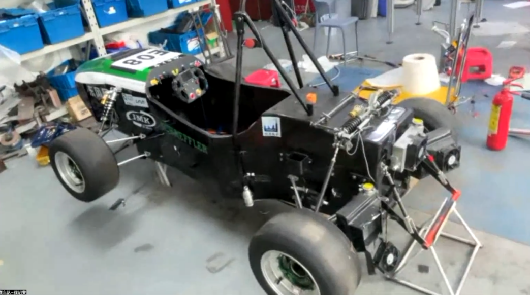 会议第二部分,程胡斐同学通过线上直播的方式,带领大家云参观了赛车队的工作车间。结合工作室内的实物,介绍了成员的平时干活的工作台、正在制作中的赛车、车手训练用到的驾驶模拟器等等。可以看到,工作室内的器件和工具非常之多,车队成员们一步步地将赛车打造出来的过程中,也能收获满满的成就感,锤炼过硬的本领。