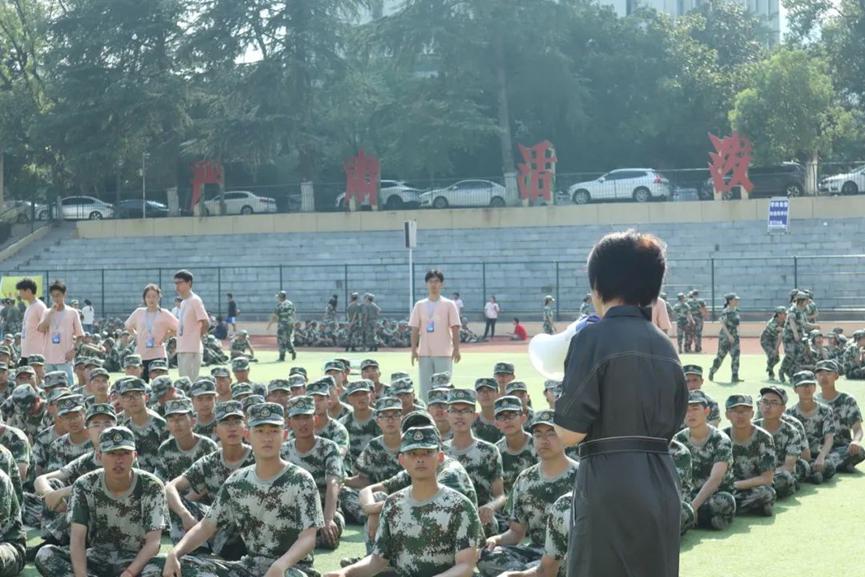 23级所有新生表达了自己的热切期盼和殷切关心,她首先提出希望新生们能够珍惜军训的难忘时光,其次表示希望大家在军训期间能够抽出一部分时间了解大学的学习方法、作好大学四年的规划,最后贴心地提醒大家注意安全。并为大家带来了一些慰问物资。彭书记讲话结束,现场响起了雷鸣般的掌声。