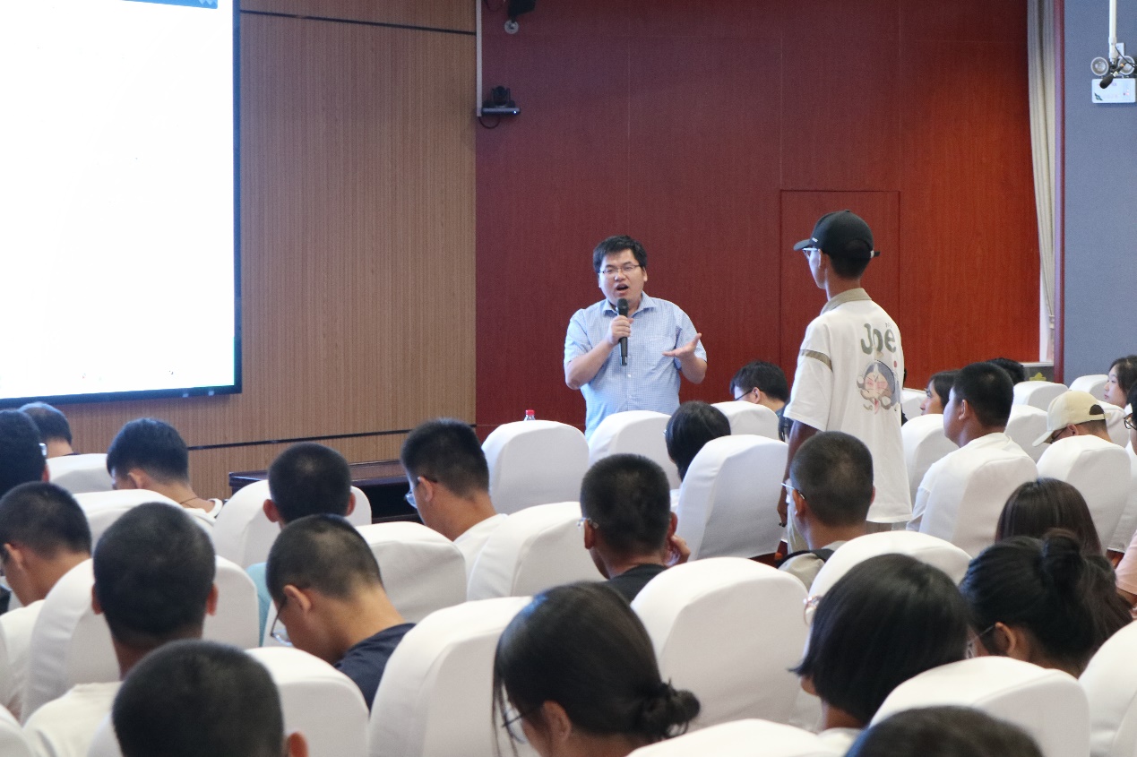 在互动交流环节,彭立新、陈征、陈敬炜、2023级班主任邓元望和马寅杰等老师详细解答了前期收集的各种问题,如专业内涵、培养方式、就业前景、就业选择、读博、推免、发展规划等问题。随后,学生们在会场又踊跃提问,提了许多有深度的问题,老师们一一为同学们耐心解答,现场气氛热烈又融洽。
