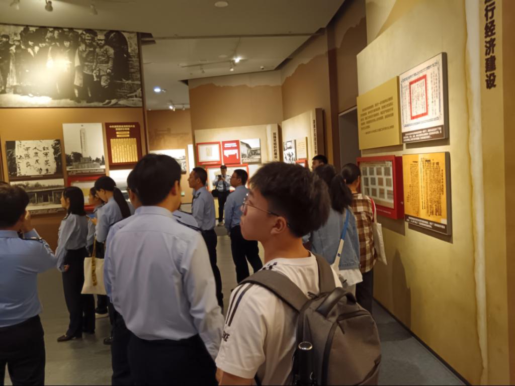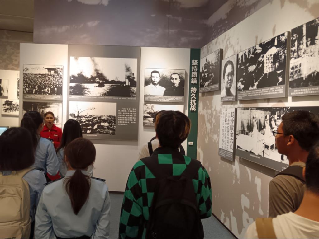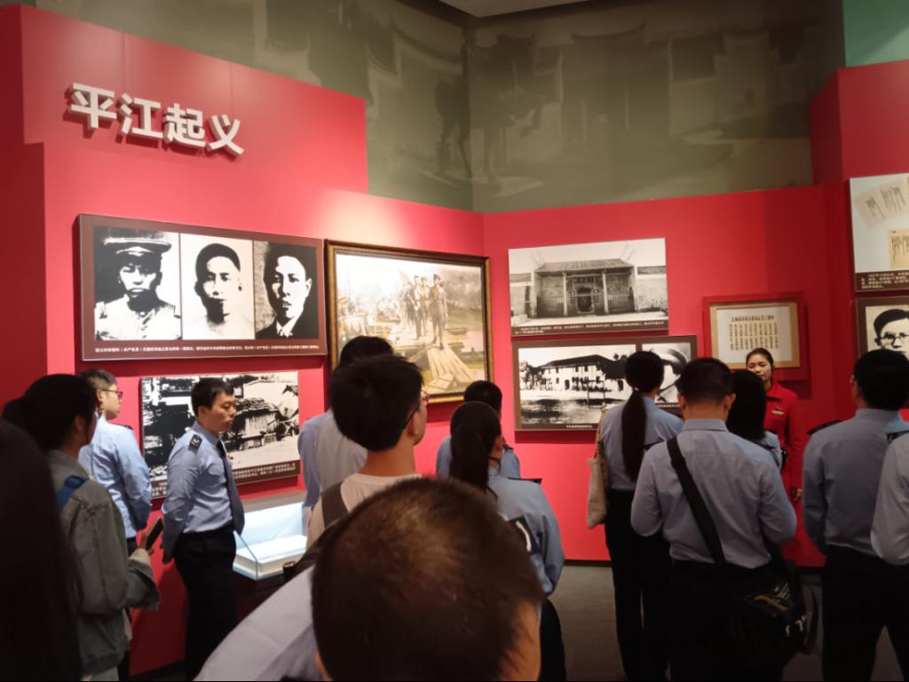 进入陈列馆,名为潇湘魂的浮雕上,以北去湘江,巍巍岳麓映衬三位伟人的身形,伟人们敢叫日月换新天的豪迈气魄、宏伟襟怀,引同学们不觉仰望。革命是把开山斧,直教混沌散去来。同学们的学习,从党的革命历史开始。