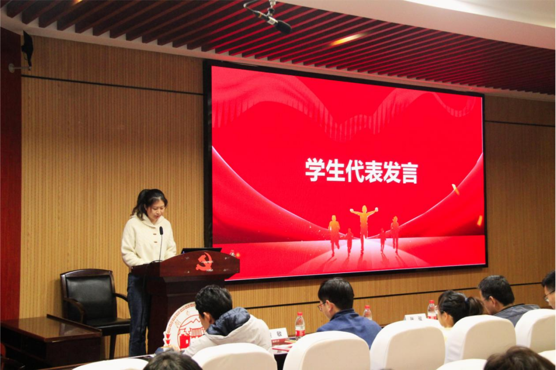 智能制造2101班学生干部代表彭斓,在开班仪式上作为优秀学生干部代表发言。她对此次学院开设学生干部培训班表示由衷的感谢,并谈到,作为一名学生干部,她始终深刻认识到学生干部肩负的责任与使命,从“学而思思责任之重、思而行行实干之事、行而悟悟成事之道”三个方面,呼吁干部们在实干中发挥实际行动,以务实笃行的态度锤炼能力本领,努力为学院的发展贡献力量。