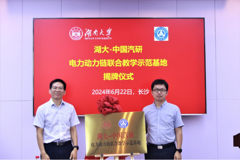 (湖大-中国汽研电力动力链联合教学示范基地揭牌仪式)