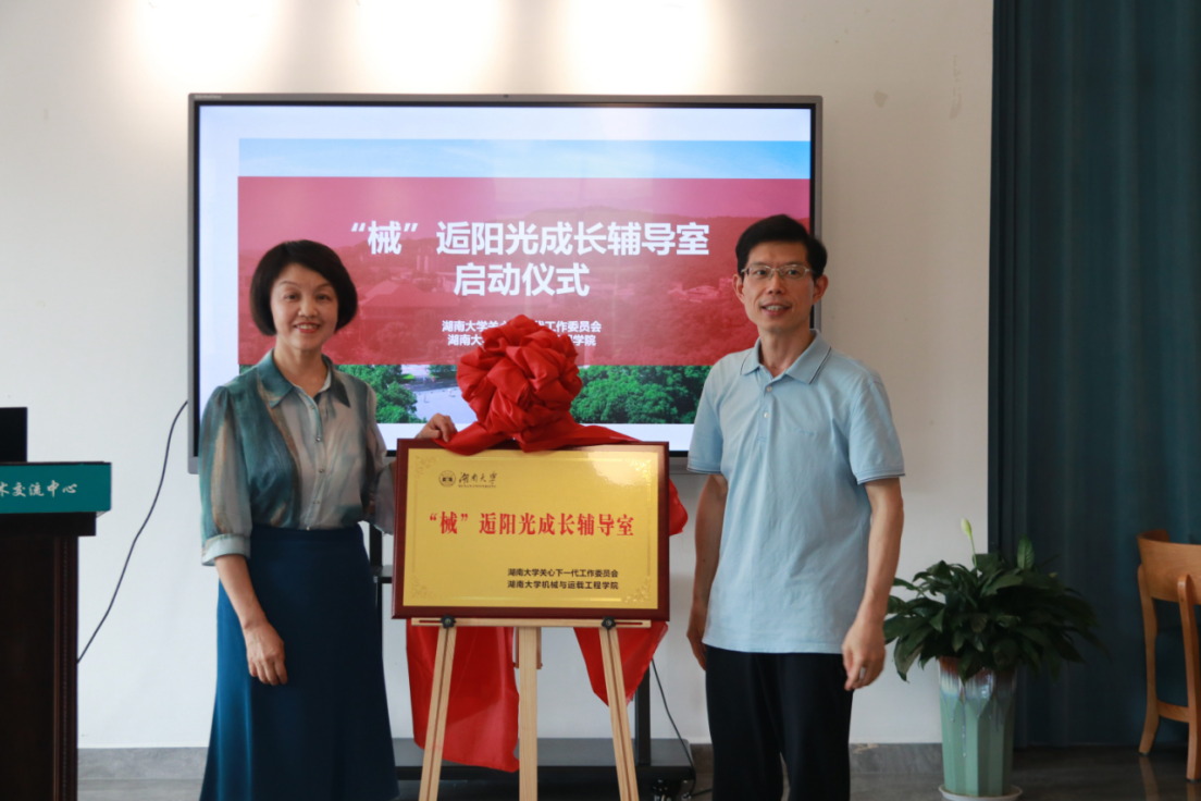 (李勇军和彭晓燕共同为“械”逅阳光成长辅导室揭牌)