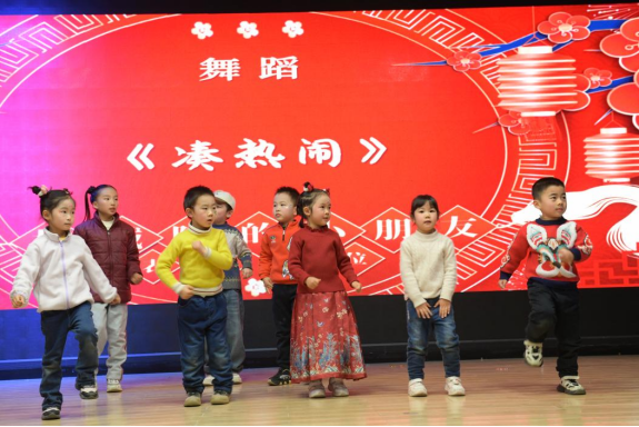 在这些精彩的节目表演中,还有一群特别的小朋友,他们用活泼可爱的舞蹈《凑热闹》为联欢会增添了一抹亮丽的色彩。