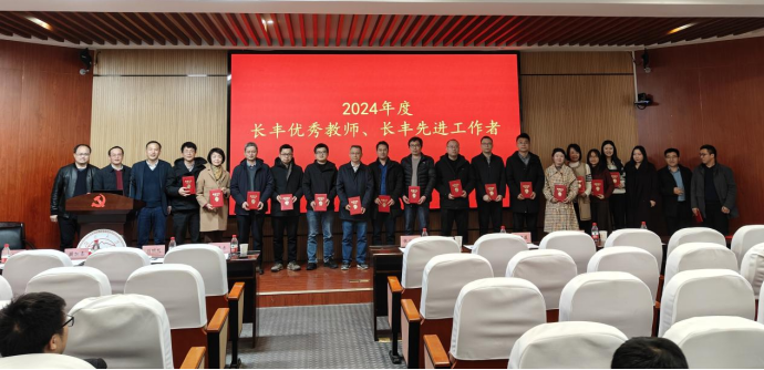 会议表彰了2024年度长丰优秀教师17名、长丰先进工作者3名以及在教学实践、教研教改、学科建设、科学研究、公共服务等方面做出突出贡献的优秀教师。学院领导为长丰奖教金获得者颁奖并合影留念。