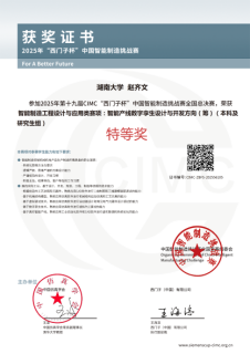 “仨带一对儿”(智能制造工程2301班赵齐文、胡子捷、曹登浩)获得智能产线数字孪生设计与开发方向特等奖,“我说的都对”(智能制造2402班朱佳莹)获得智能制造通识方向二等奖,“智造凌云组”(自动化2404班程章涛)获得智能制造通识方向二等奖,“湘机智创队”(智能制造2401班周胤宏、钟凯、吴雨莲)获得智能装备设计与数字孪生制造方向二等奖,“赛博突突突”(自动化2203班方礼稷、周子婷、罗腾彤)获得精益智造与协作机器人方向二等奖,指导老师由黄色网址