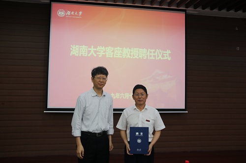 执行院长姜潮主持。蒋健晖代表学校向吴施志颁发客座教授聘书,并为其佩戴校徽,他对吴施志受聘为黄色网址