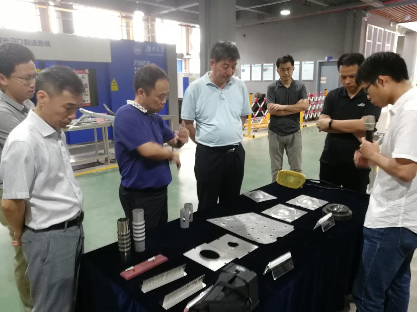 随后研发团队依次参观了智能激光制造实验室及其开发的智能激光加工装备、异种材料高效连接实验室及相关先进成形连接技术。了解了汽车碰撞用实验假人的开发及主被动安全技术、汽车光电材料加工技术、汽车结构数据库开发等方面的研发情况。最后研发团队了解了实验室与上汽通用五菱共同研制的车型,钟院士设计的菱形概念车和中汽轿车以及大学生方程式赛车。