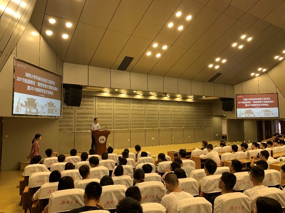 2019级直博生“睿思荣誉计划颁奖典礼”暨2019级研究生新生开学典礼于逸夫楼报告厅举行,全院500余名博士和硕士研究生新生正式开启湖大之旅。院党委书记彭晓燕代表学院致辞,他寄语同学们:要保持不断探索新知的动力,勇做时代的创新者。