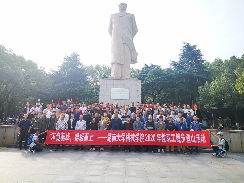 师生集合在毛主席像前拍照留念。坚毅的目光、认真的神情,机械师生的精神风貌和健康体魄,在定格的相片中展现淋漓。无论是白发学者,还是中层砥柱;无论是青年教师,还是学生代表,纷纷积极响应、认真准备,将这次健步登山活动落实在脚下、落实在长远,在学院内部、甚至全校范围,掀起了一阵全民健身的浪潮。