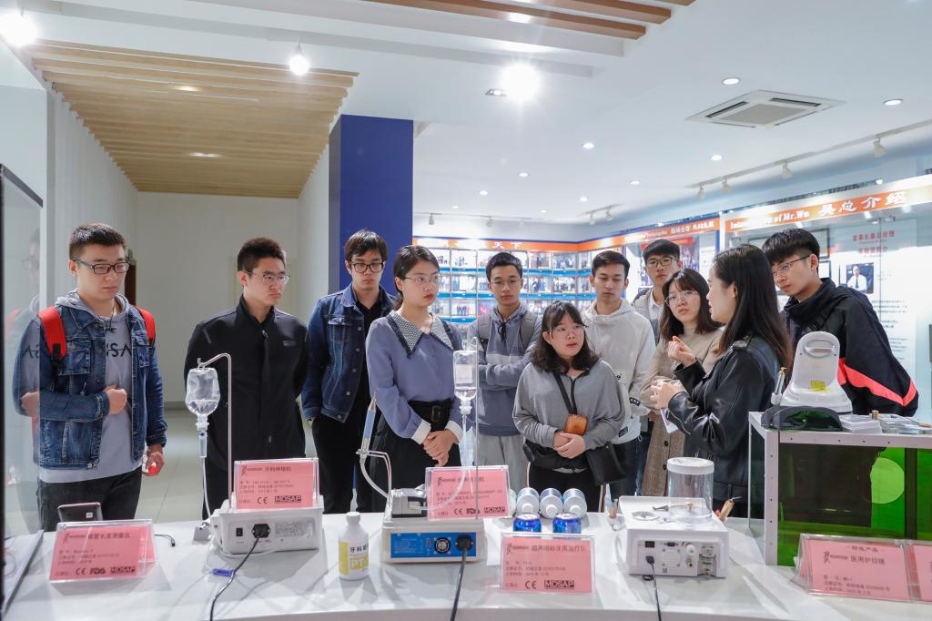 、电气与信息工程学院本科生、研究生代表组成的考察团在辅导员闫智琪、王欣的带领下,来到广西桂林啄木鸟医疗器械有限公司进行参观考察。上午9点,考察团来到位于桂林市高新信息产业园区内的啄木鸟公司,进行了为期一天的实地考察,考察团受到了公司的热情接待。