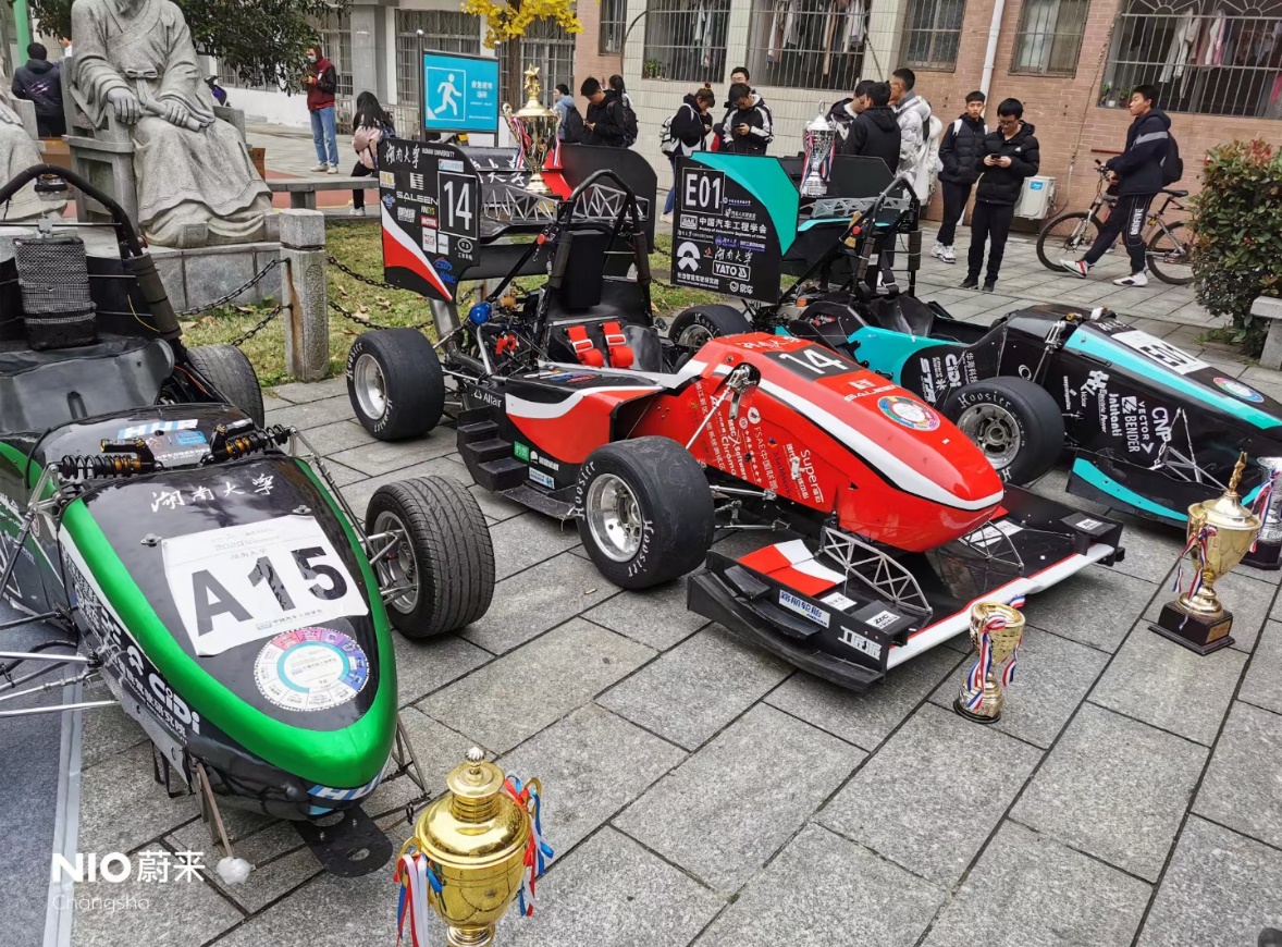 作为湖大的“王牌”,方程式赛车当之无愧的成为此次汽车文化节活动的一大亮点,陈列在场地周围的赛车上载着往日的奖杯与荣耀,将它昔日的风采尽情展现,引人瞩目,吸引众多新晋“HUNer”驻足。