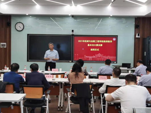 2021年教师教学基本功大赛决赛在中楼405教室举行,本次大赛旨在进一步提升年轻教师的教学基本功,大力推动年轻教师不断更新教学理念,熟练运用现代教学方法,全面提升将思政元素融入机械类工程课堂教学的能力。