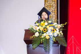 奏唱国歌后,丁荣军致辞,他祝贺同学们圆满地完成了学习任务,肯定了在校学习期间展现的聪明才智,坚信同学们都将在未来绽放光彩。同时他期望同学们未来人生中不管是取得成功还是遇到困难,都能告诉你们的老师,成功时,让老师们分享你的喜悦,遇到困难时,老师们都能尽力帮你排忧解难。同学们无论选择继续深造还是任职工作,都能骄傲地说出“我是湖大机械人!”