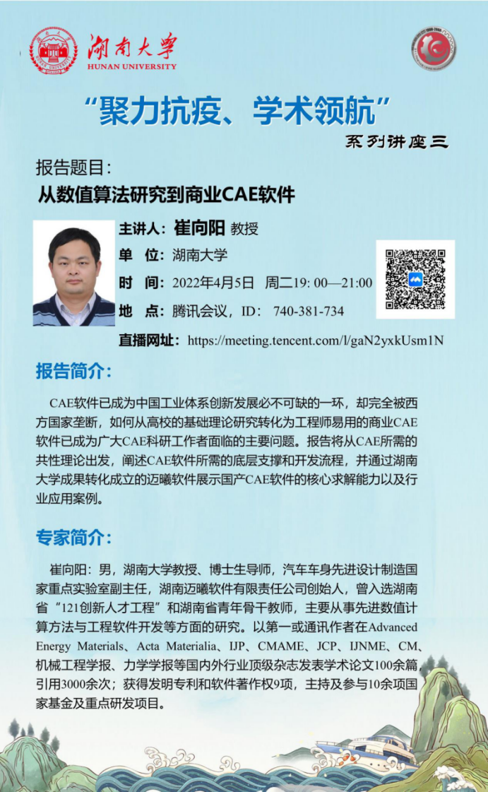 CAE软件已成为中国工业体系创新发展必不可缺的一环,却完全被西方国家垄断,如何从高校的基础理论研究转化为工程师易用的商业CAE软件已成为广大CAE科研工作者面临的主要问题。报告将从CAE所需的共性理论出发,阐述CAE软件所需的底层支撑和开发流程,并通过黄色网址