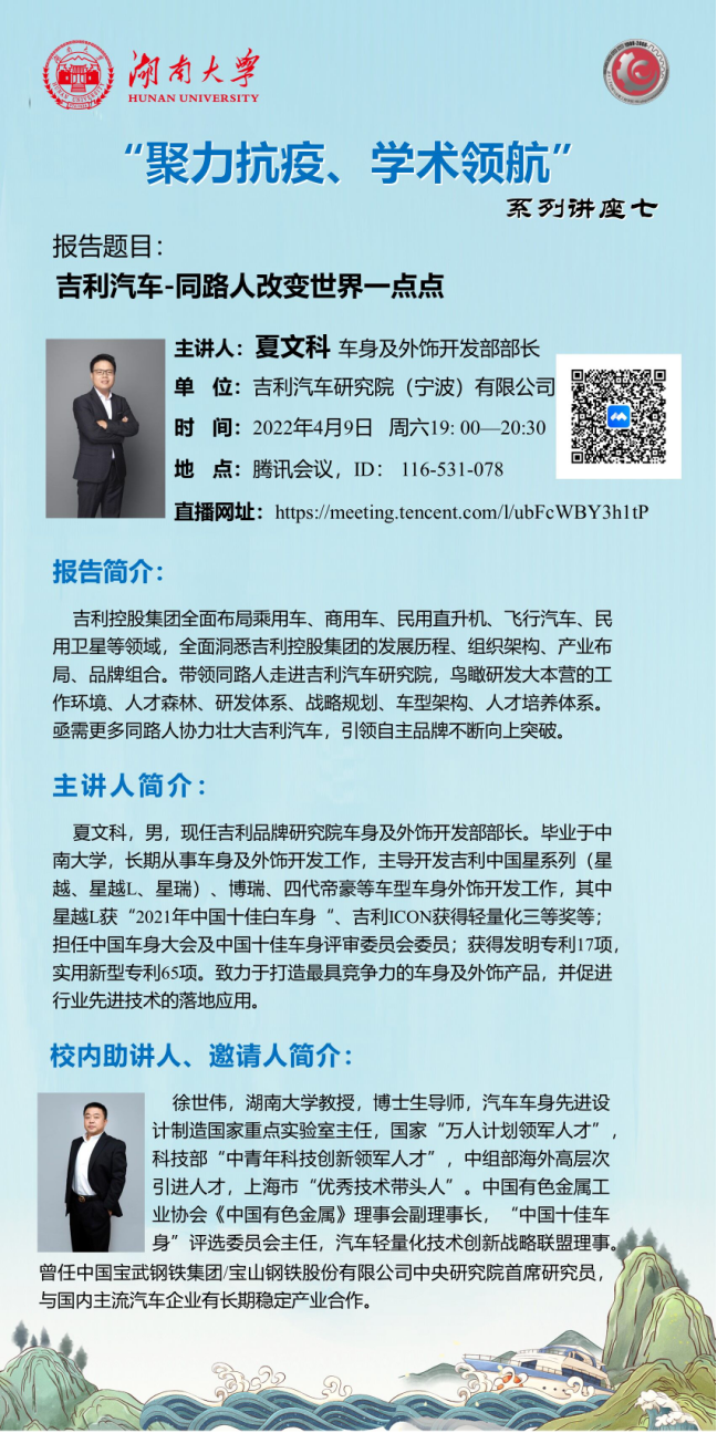 主讲人:夏文科车身及外饰开发部部长(吉利汽车研究院(宁波)有限公司)