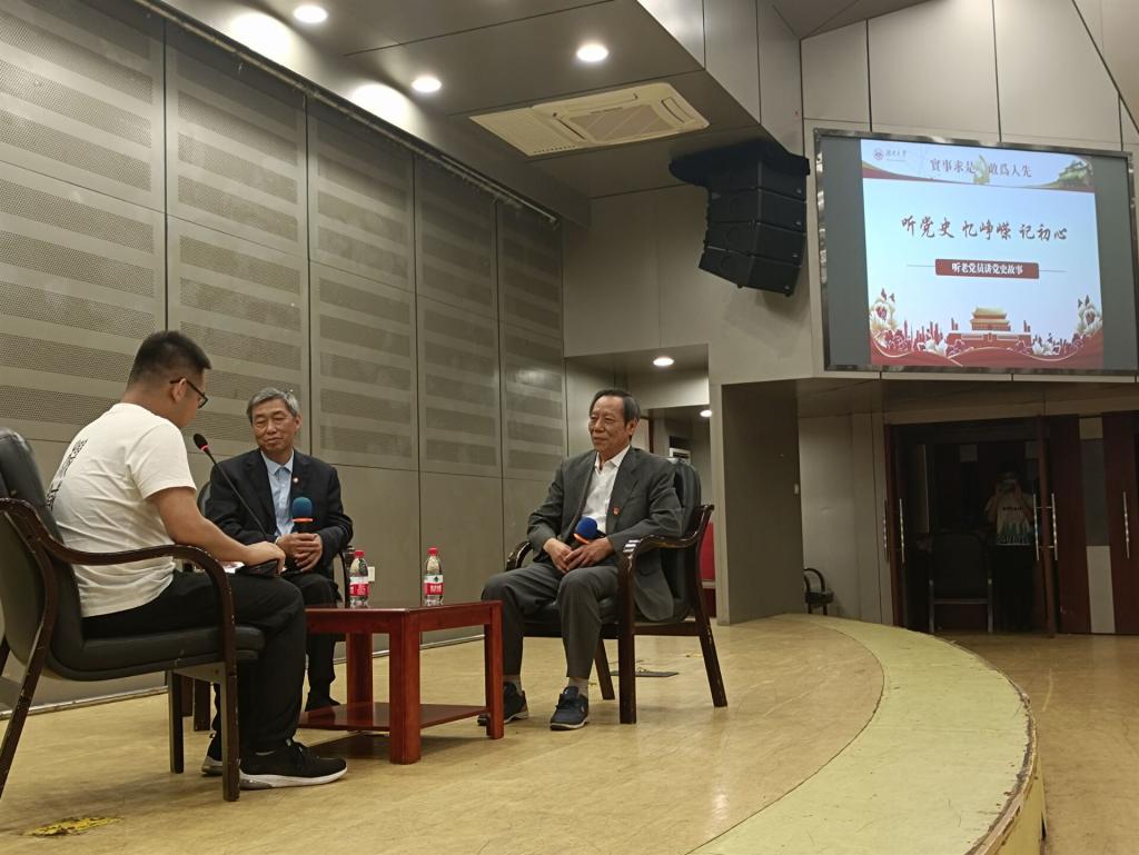 结业仪式特别邀请到了李孟仁、方其让两位老同志上台,为同学们带来一堂生动的“党史课”。李孟仁和方其让同志从入党初心,为党奋斗等主题,结合自身的故事,讲述老一辈共产党员秉承革命理想,发扬奋斗精神的感人事迹。他们还特别回忆了,自己是如何从感性到理性认识中国共产党和共产主义,再到潜移默化中向党组织靠拢心路历程。最后,两位老党员更是嘱托同学们要加强理论学习,从思想上入党,发挥党的先进性、模范性,把工作、生活融合起来,脚踏实地得做到全心全意为人民服务。