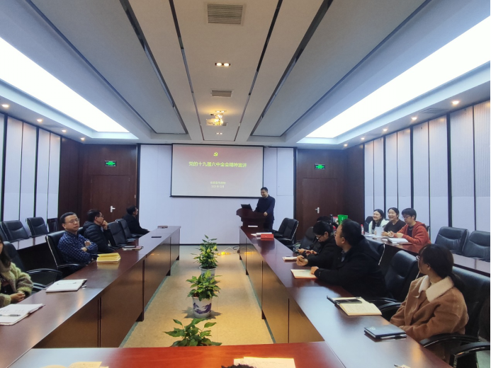 2021年12月15日下午,机关党支部邀请学院党委副书记贺迅老师对十九届六中全会精神进行宣讲,机关党支部书记黄倩雯主持会议。