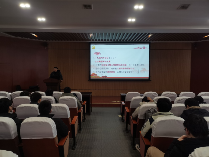 楼401集中学习了党的十九届六中全会精神。会议由支部书记李明泽老师主持。