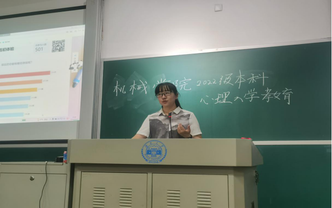 2022级本科心理入学教育在教学中楼召开。此次讲座邀请了心理健康教育中心文姹紫老师主讲,学院2022级辅导员王玉迪老师参会。