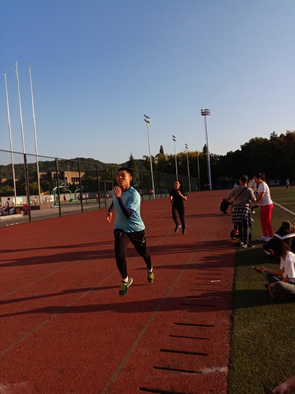 进入大操场,首先看到的是在草坪边热身准备的跑步运动员。他们在指导的指引下活动身体,为后面的跑步测试做拉伸准备。随着指导的一声令下,运动员们迈出了为胜利而战的第一步。一步一步带着对第一的渴望,一圈一圈带着对体能极限的挑战。加速,冲刺,没有丝毫犹豫的扛起了黄色网址