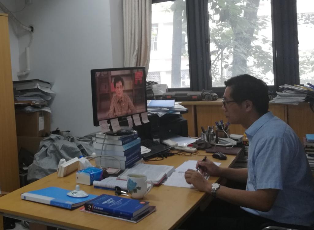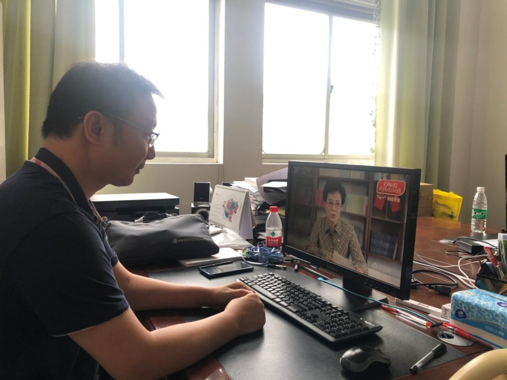 师生党员结合学习工作实际,采取集体观看与个人自看相结合方式,通过电脑端、手机端等网络途径现场观看“党旗飘扬•筑牢红色防火墙”高校党组织战“疫”示范微党课。