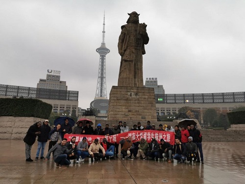 研究生学会留学生部的同学向留学生详细讲解了中国人的始祖——炎帝,并与大家在炎帝广场合影留念。